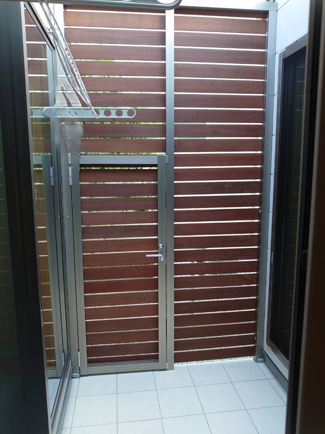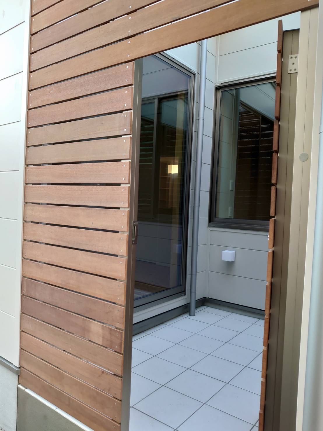 人目を気にせず過ごせる中庭をウリンという天然木材で板張りしました。