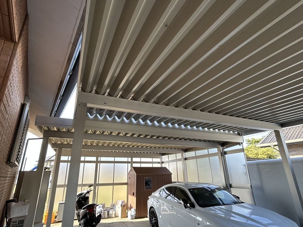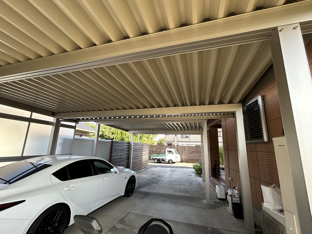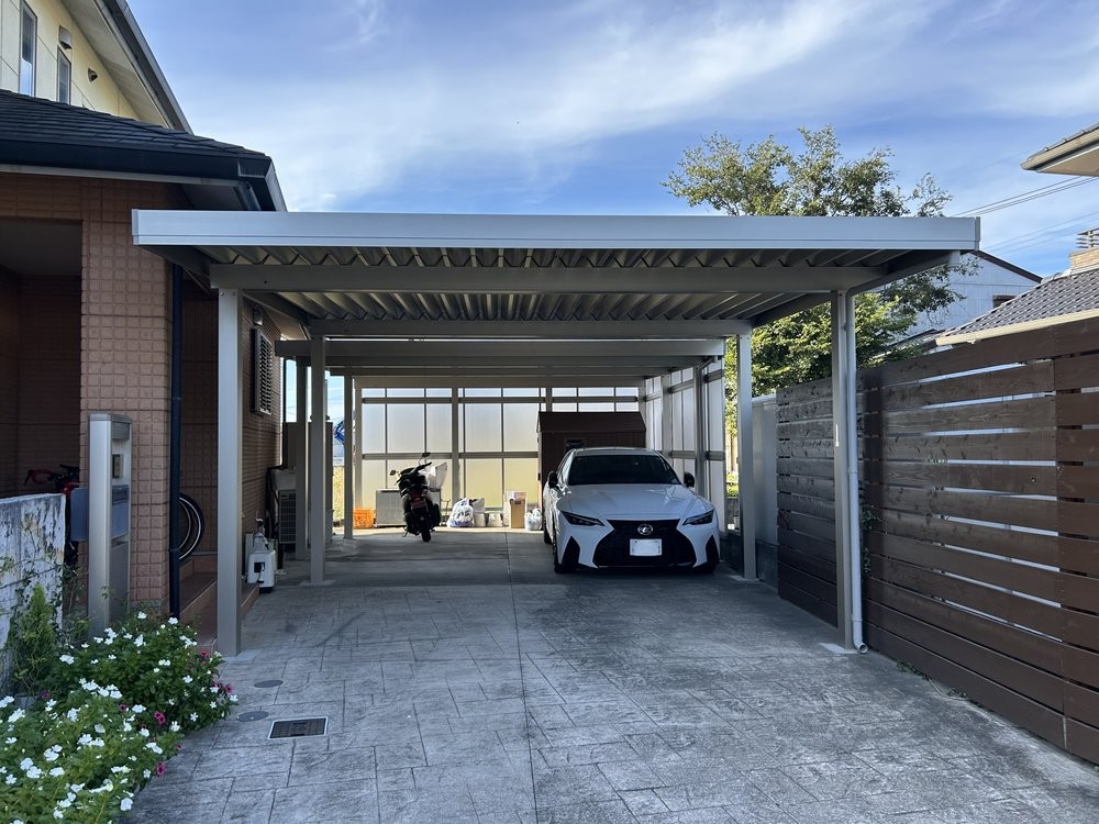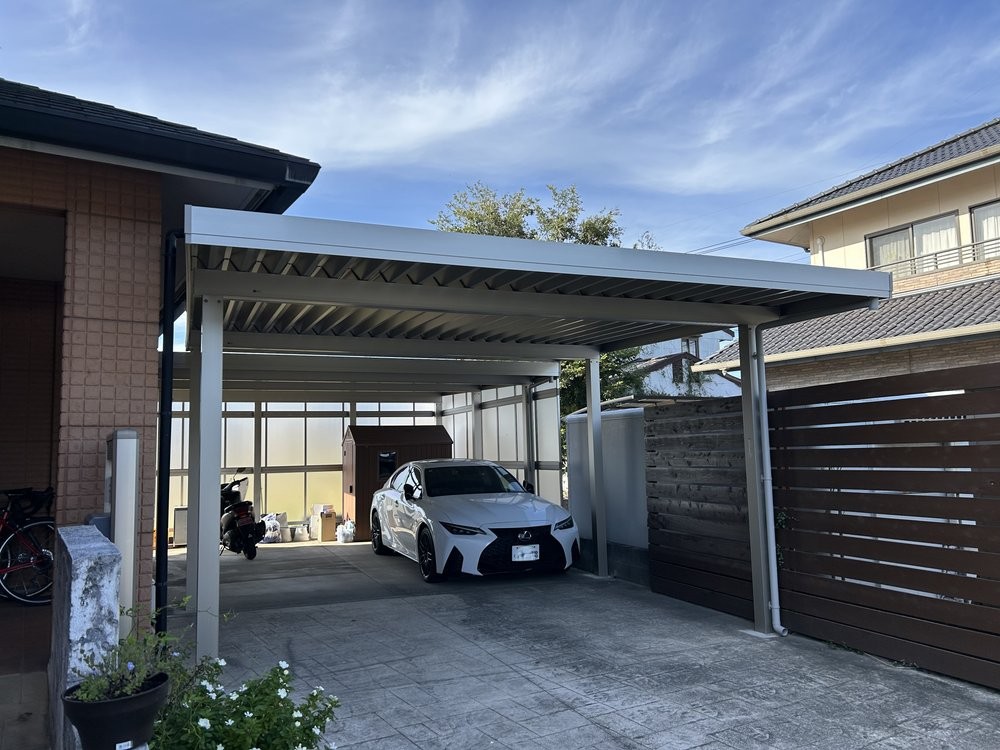 2台のカーポートを縦に設置しました。つないだりするのではないので2台のカーポートの高さや位置の兼ね合いが難しかったです。
